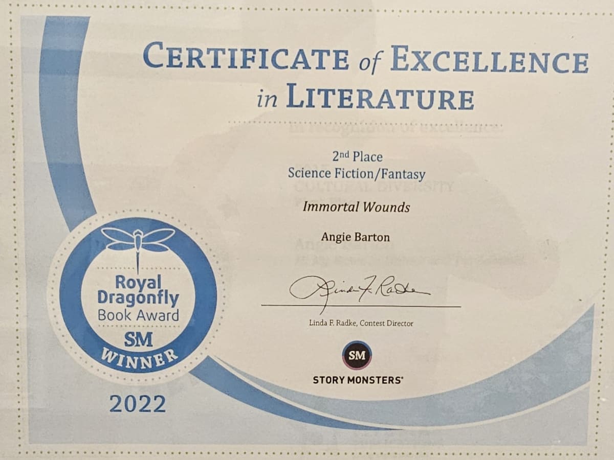 Immortal Wounds was awarded 2nd place in the Science Fiction/Fantasy category!
